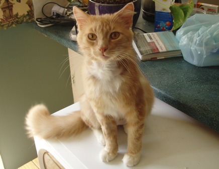 Saffron (f) was born approx 4/4/08. She is a pale ginger tabby(rare in females) and has gorgeous soft downy fur with a medium hair coat.