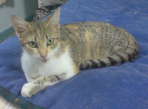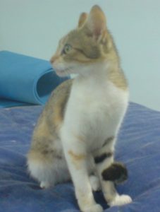 Chanel was was only 6wks old at the time and is a very pretty short haired Calico coloured kitten. Playful and friendly