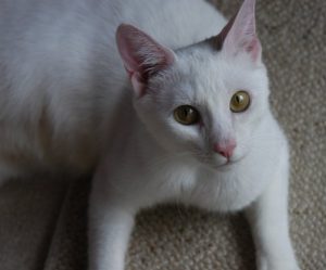 Chanel will need to be an indoor cat as cats with pink noses/ears are more susceptible to sunburn. Repeated sunburn can lead to skin cancer, so it will be important to make sure that Chanel is not left outdoors in the sun for long periods.
