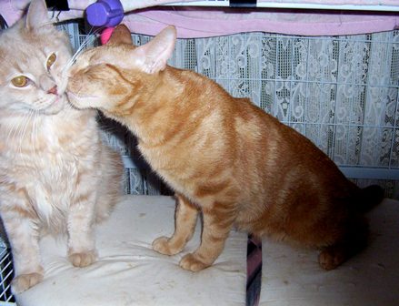 I am a shorthaired orange ginger tabby boy approx 2yrs old. My buddy is Pierre, a handsome medium hair cream/champagne ginger tabby boy approx 12mths old.