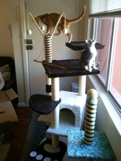 We are so happy that my partner and I decided to adopt these two amazing cats. They have always been close since they were kittens and seem inseparable even now that they are older. They are always playing together and sleeping together and cleaning each other.We recently started leaving the back door open to let them out into the courtyard, but they both seem scared to venture out, and constantly sit at the doorway looking out. Last night they both crept out for a quick exploration but ran back in quickly after a car backfired. Having decided to move to a bigger place, we hope that they will have more room to run around too! Thanks again for all the good work that you do!