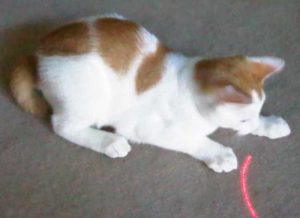 At night he is full of life, runs around the house and jumps on our bed and meows till we wake up, wants us to join in the fun.. he gets in to every cupboard, climbs everything, tackles the Christmas tree, drags the Christmas balls into the shower and doesn’t want to give them back.